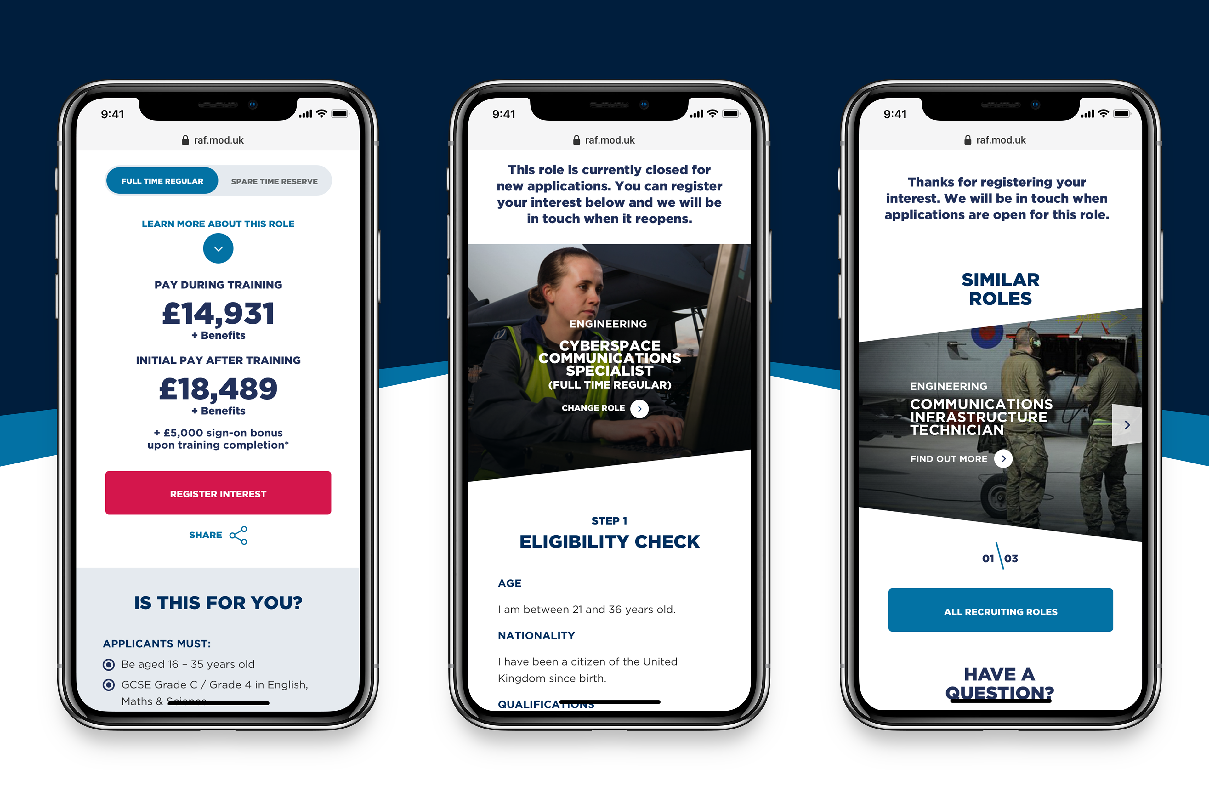 Despite high interest in certain RAF roles, application numbers were declining due to friction in the end-to-end user journey–particularly when users encountered closed roles.